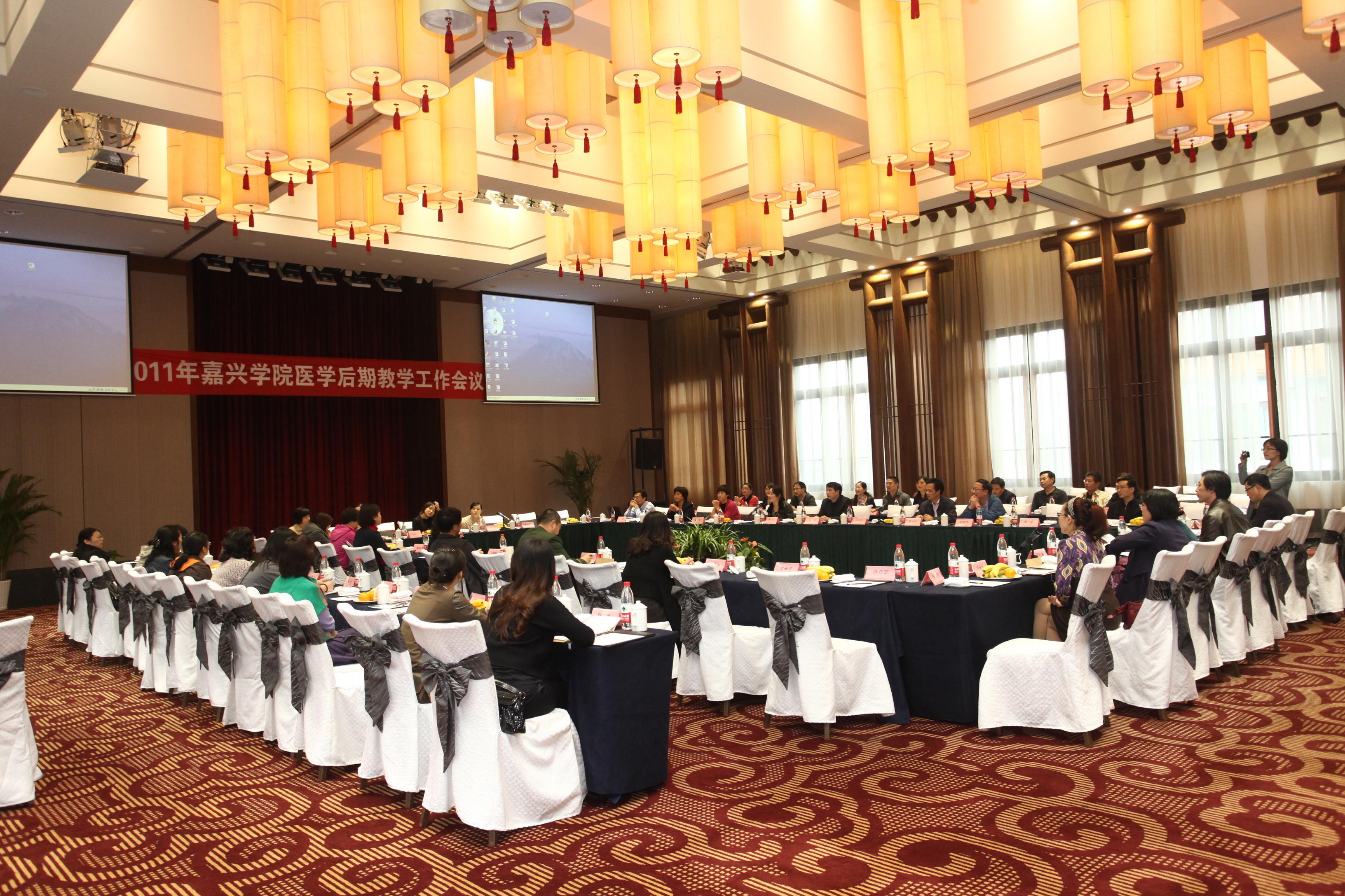 2011年10月28日下午,嘉兴学院医学后期教学工作会议在嘉兴市月河客栈会议厅顺利召开。嘉兴学院副校长严从荃、教务处处长徐永良、附属医院、浙江大学永利23411附属第一医院等共25家单位的临床教学管理人员和临床教师、永利23411党政领导、三办主任、各研究所负责人等出席了会议。会议由黄嬛副院长主持。