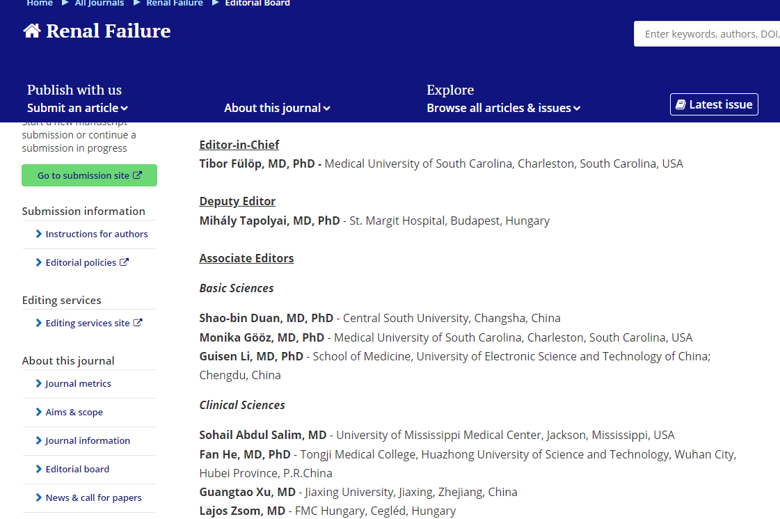 近日,我校永利23411徐广涛副教授应国际期刊Renal Failure邀请,担任该期刊副主编(Associate Editor)。