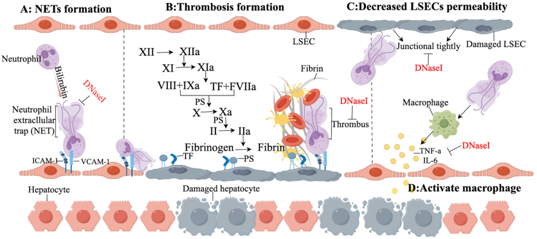 中性粒细胞胞外诱捕网(NETs)中性粒细胞在不同的刺激因素下,通过 NADPH 或非 NADPH 途径,活化肽酰精氨酸脱亚胺酶 4(PAD4)启动核内染色质的解聚,释放的网状结构。NETs 会对多种细胞造成损伤,促进炎症过程,并且具有强大的促凝能力,增加血栓形成风险。本研究聚焦NETs与肝损伤,并探讨抑制NETs对胆汁淤积性肝病(CLD)肝损伤的作用及机制,为CLD提供治疗靶点及理论依据。
