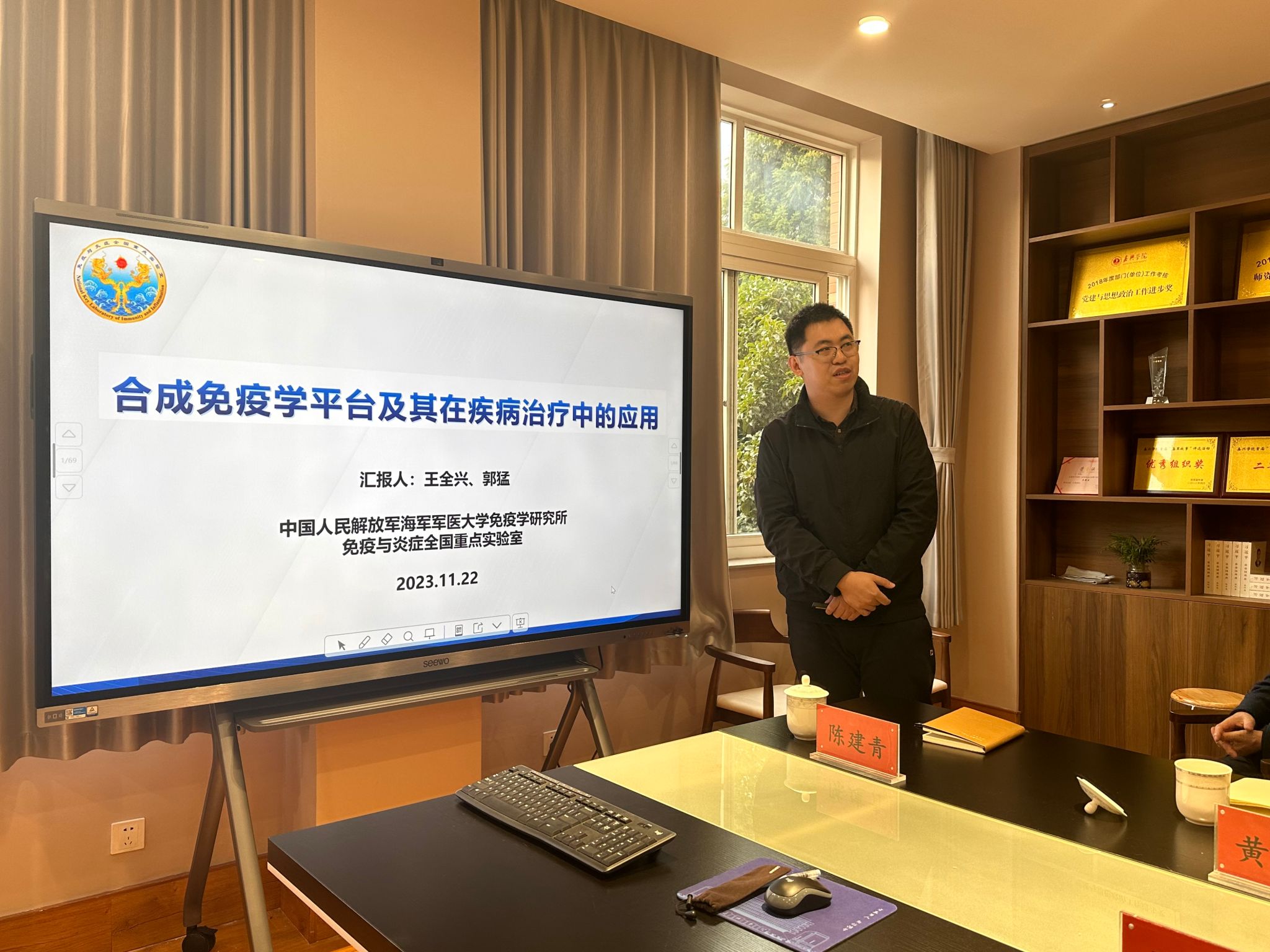 11月22日,第二军医大学医学免疫学国家重点实验室副主任、博士生导师王全兴教授在嘉兴学院G60创新研究院曹红副院长的陪同下来我院开展学科建设调研交流活动。学院党委书记陈云飞、副院长潘巍巍、病原生物学与免疫学教研室主任姜玉新,G60创新研究院项目管理部负责人黄志文,第二军医大学副教授郭猛等一行参加活动。会议由党委书记陈云飞主持。