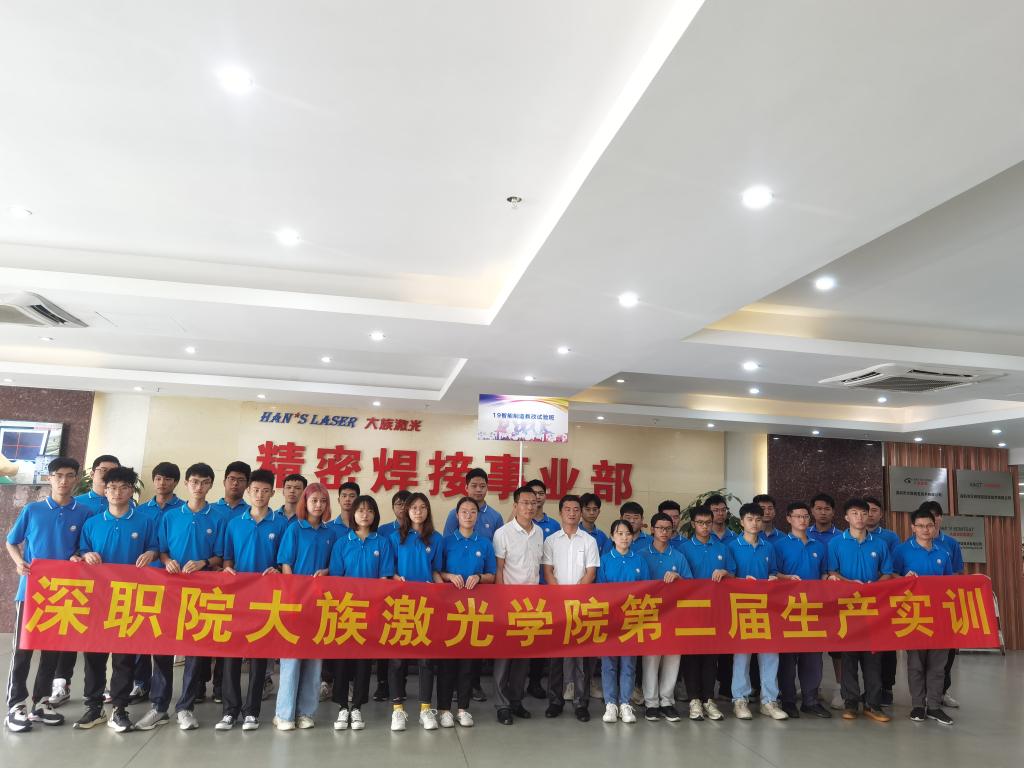 6月16日,机电学院19智能制造教改班的30位同学在机电一体化专业主任宋志刚和专业教师文双全的带领下,来到大族激光福永生产基地与大族激光精密焊接事业部参加深职院大族激光产业学院第二届生产实训开班仪式。开班仪式上,大族激光总裁助理张广东为同学们介绍了公司发展历程、产品应用场景和企业愿景和使命;生产部总监郑旭详细介绍了生产实训安排和安全生产注意事项等。会后,同学们怀着激动的心情参观了大族精密焊接展厅以及各产品生产中心。按照实训计划,同学们将分在光源整机、自动化科、信息装备部和汉狮自动化四个部门展开为期一个月的生产实训,实训期间有专门的企业老师指导,并将在生产、研发等部门轮岗。