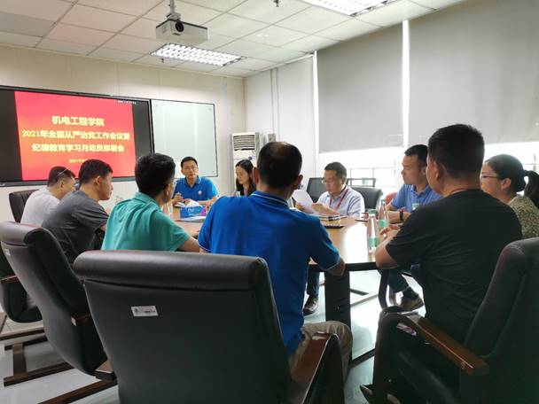 9月17日中午,机电学院在行政楼408召开2021年全面从严治党工作会议暨纪律教育学习月动员部署会。会议由机电学院党委书记吕炜主持,学院党委委员、学院各支部书记参加此次会议。