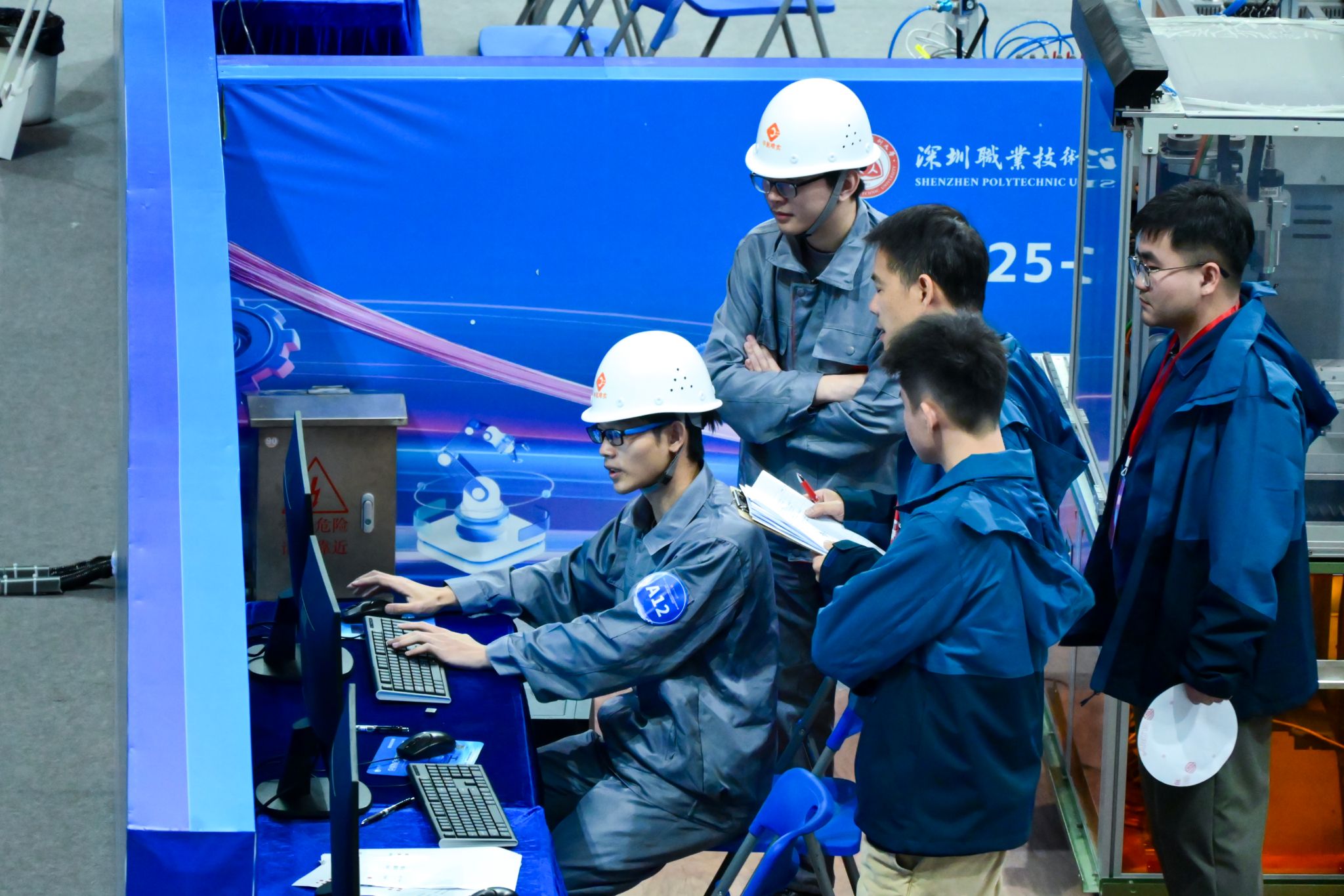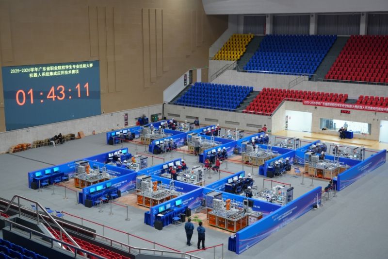 3月14日,2025-2026学年广东省职业院校学生专业技能大赛机器人系统集成应用技术赛项在我校西丽湖园区体育馆圆满落幕。经过一天的激烈角逐,由我校机电工程学院教师熊俊峰、马松松指导,2025级学生李学武、张锦涛、程俊轩、徐文轩组成的代表队脱颖而出,以总分第一名的优异成绩荣获学生团队赛一等奖。本次大赛由广东省教育厅主办、机电工程学院承办,汇聚了来自全省50所职业院校的50支参赛队伍,共计200余名选手同台竞技,是省内该领域高水平专业技能的一次集中展示。