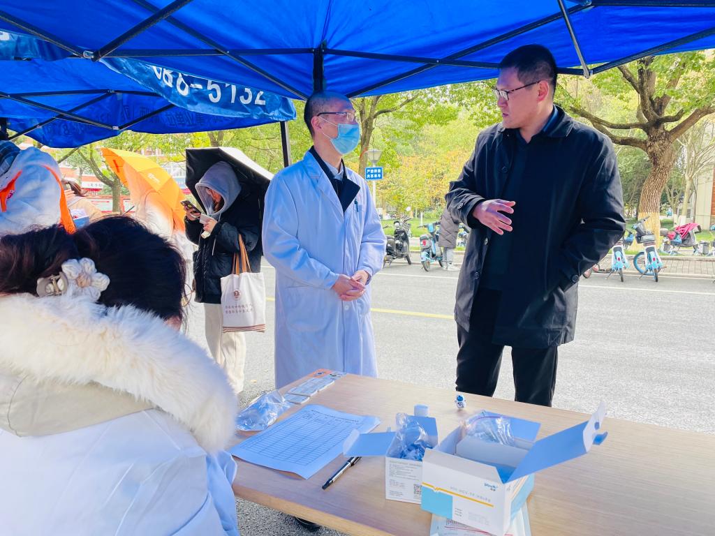 防艾宣传活动现场,来自嘉兴市疾控中心、嘉兴学院附属妇儿医院、嘉兴市城南卫生院的老师们为同学们做防艾知识宣传,发放宣传单页和安全套,开展指尖采血,进行乙肝、丙肝、梅毒、艾滋病的快速检测。