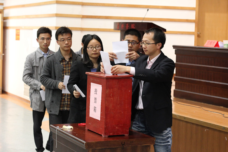 之后,会议听取并审议通过了黄金珠同志关于《永利23411党费收缴、使用情况的报告》、《中共嘉兴学院永利23411委员会选举办法(草案)》的报告。凌厉同志宣读了总监票人、监票人和计票人名单并审议通过。按照《选举办法》的规定,在公平、公正、公开的前提下,对新一届党委委员进行了差额选举。惠太望、黄金珠、张梅光、黄嬛、蒋小红等五位党员同志当选为新一届永利23411党委委员。