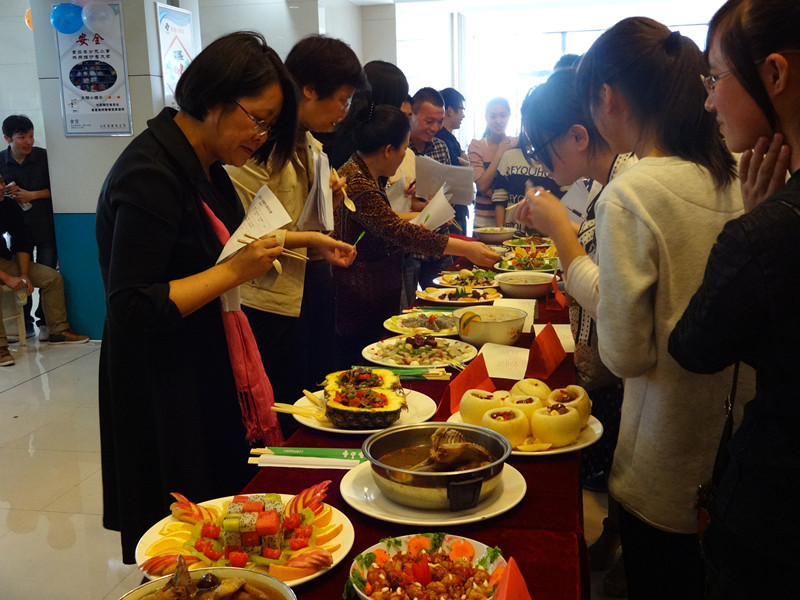 10月20日上午九点,永利23411于梁林校区新食堂二楼隆重举行首届药膳文化节暨药膳制作大赛。学院副院长黄嬛、药学系副主任黄越燕、学工办主任蒋小红、团总支书记赵丽萍、医学实验中心主任赵桂珠、生药学教研室主任黄雄及药学系教授傅应华均出席了本次活动,并担任药膳制作大赛的专业评审。此外,现场还有20位来自永利23411不同班级的同学作为大众评审,活动吸引了众多院内外的同学参与观看。