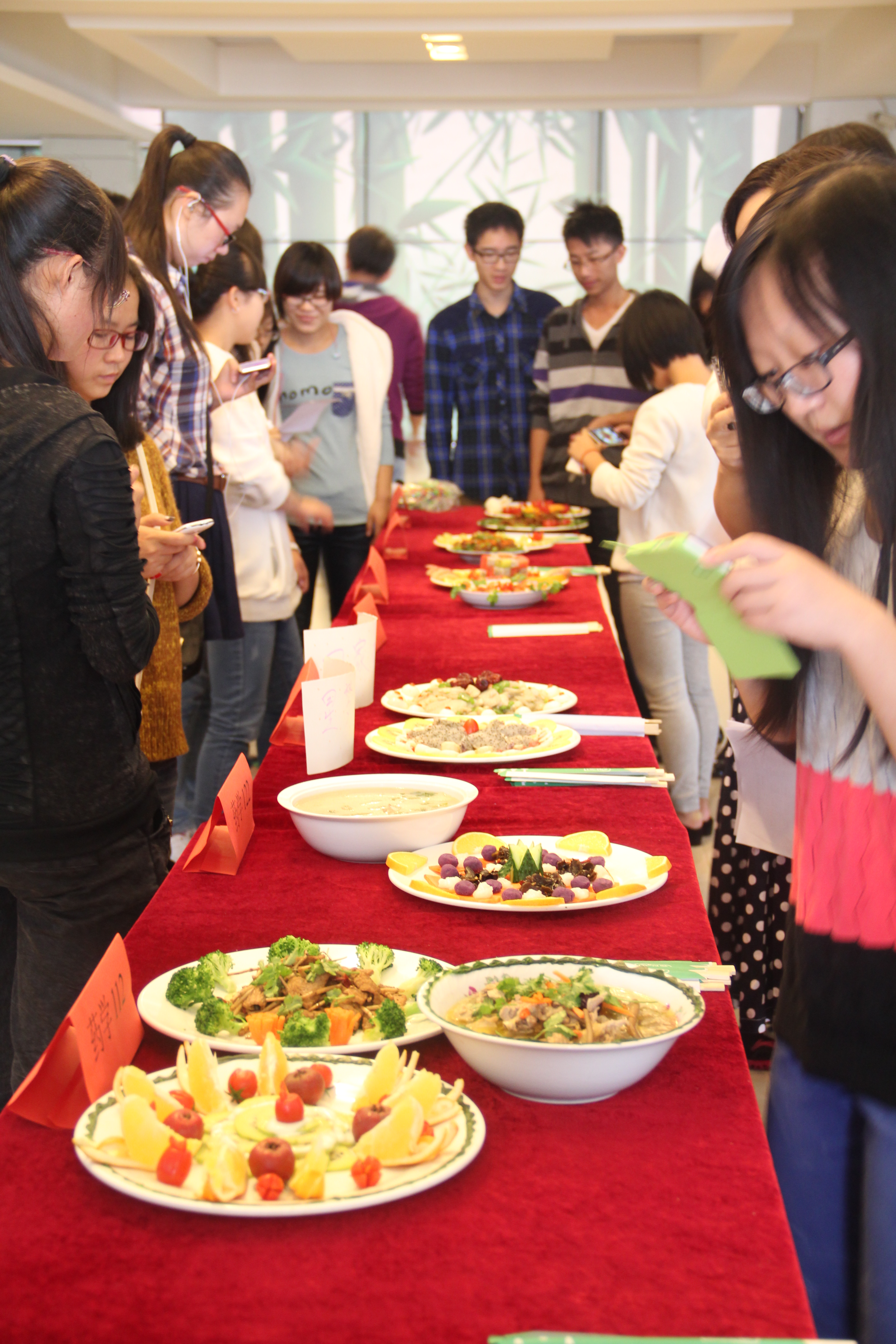 本次药膳制作大赛共有8个药学班级选送的8个团队参加,每个团队必须在规定的时间内完成两道色香味俱全的药膳主菜以及一道冷拼。经过一番紧张有序的洗切烹煮以及富有创意的摆盘设计,二十余道营养丰富且造型美观的菜品新鲜呈现。试吃品评之后,专业评审与大众评审分别给出了自己的分数,最终共评选出一等奖两名,二等奖两名,三等奖四名,以及最佳厨艺奖、最佳团队奖、最佳艺术奖各一名。