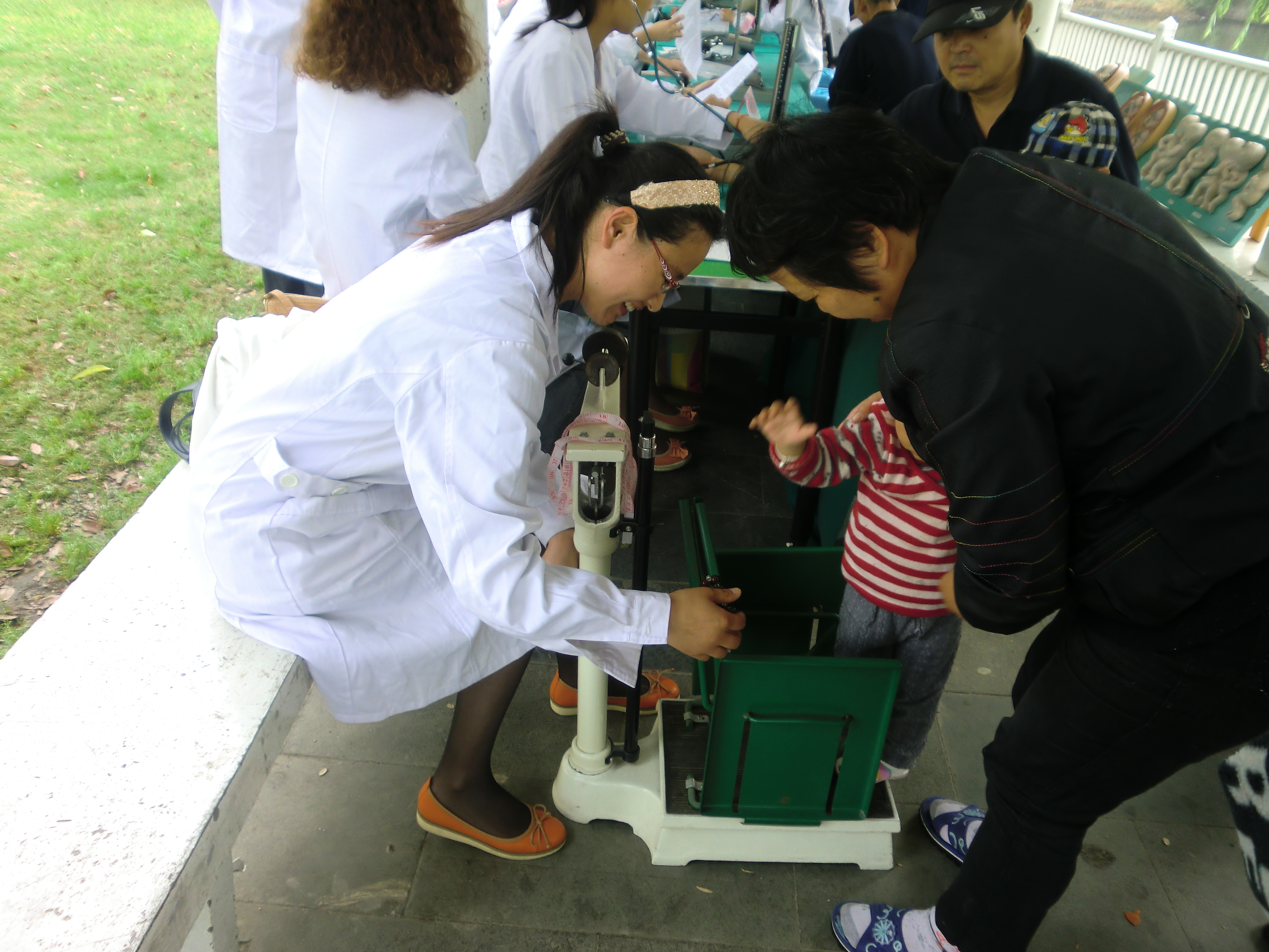 活动以一名教师党员和一名学生党员相互搭档的形式开展,教师们根据自己的专长分别开设了妇产科、儿科、内外科、皮肤科、心理咨询等相关健康疾病咨询,同学们在从旁协助并观摩学习。如凌厉老师为老人们指导夏季高血压的用药、饮食等内科问题,张梅光老师通过模型为社区居民展示了胎儿的生长与发育,谢晓云老师为社区的儿童用专门的儿童磅秤称体重、量身高等,朱明亚老师示范“家庭急救”的技能步骤等。