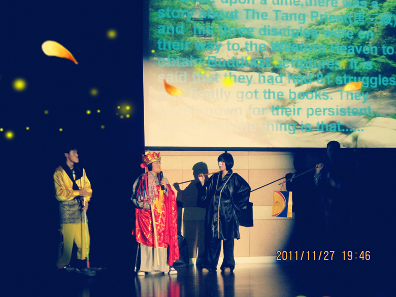 伴着观众热烈的掌声,晚会以一首由永利23411乐队带来的活力四射的《王妃》开始,铿锵有力的节奏带动了全场观众的热情,在充满异域风情的印度舞表演之后,大屏幕上依次播放了获得本届“优秀社团”称号的笛箫协会、街舞协会、吉他协会和荧光爱心社的精彩视频。一场别开生面使人捧腹大笑的英语话剧《三打白骨精》更是让晚会达到了一个高潮,精彩的演出之后再次揭晓了“最佳社长风采奖”的获得者——国标协会会长孙源和女生会馆会长林晓东。