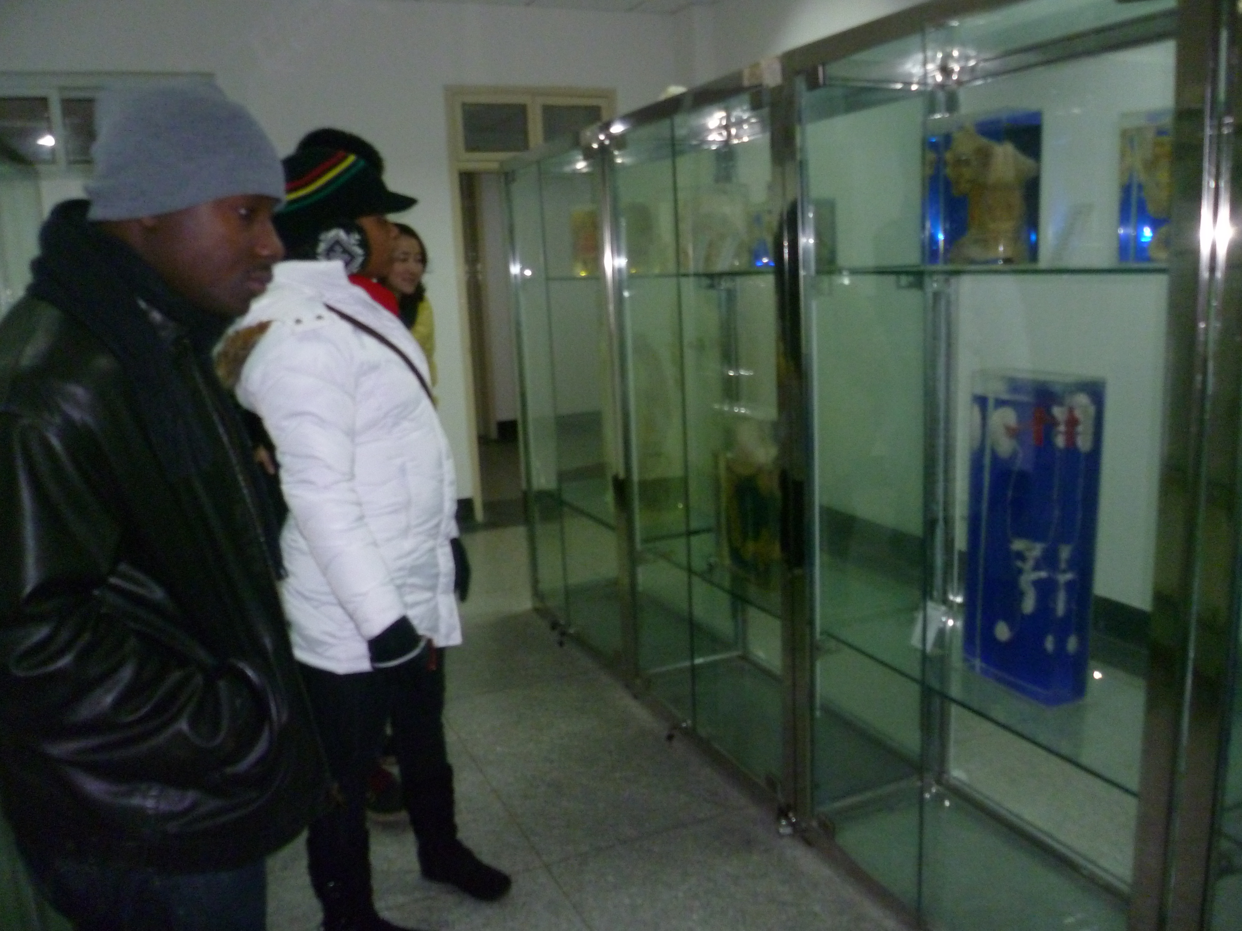 19日下午,我院学生带领美国学生参观医学实验中心,在二楼人体解剖标本室和六楼模拟医院,美国学生都饶有兴致的进行参观学习,并啧啧称奇,很感兴趣。
