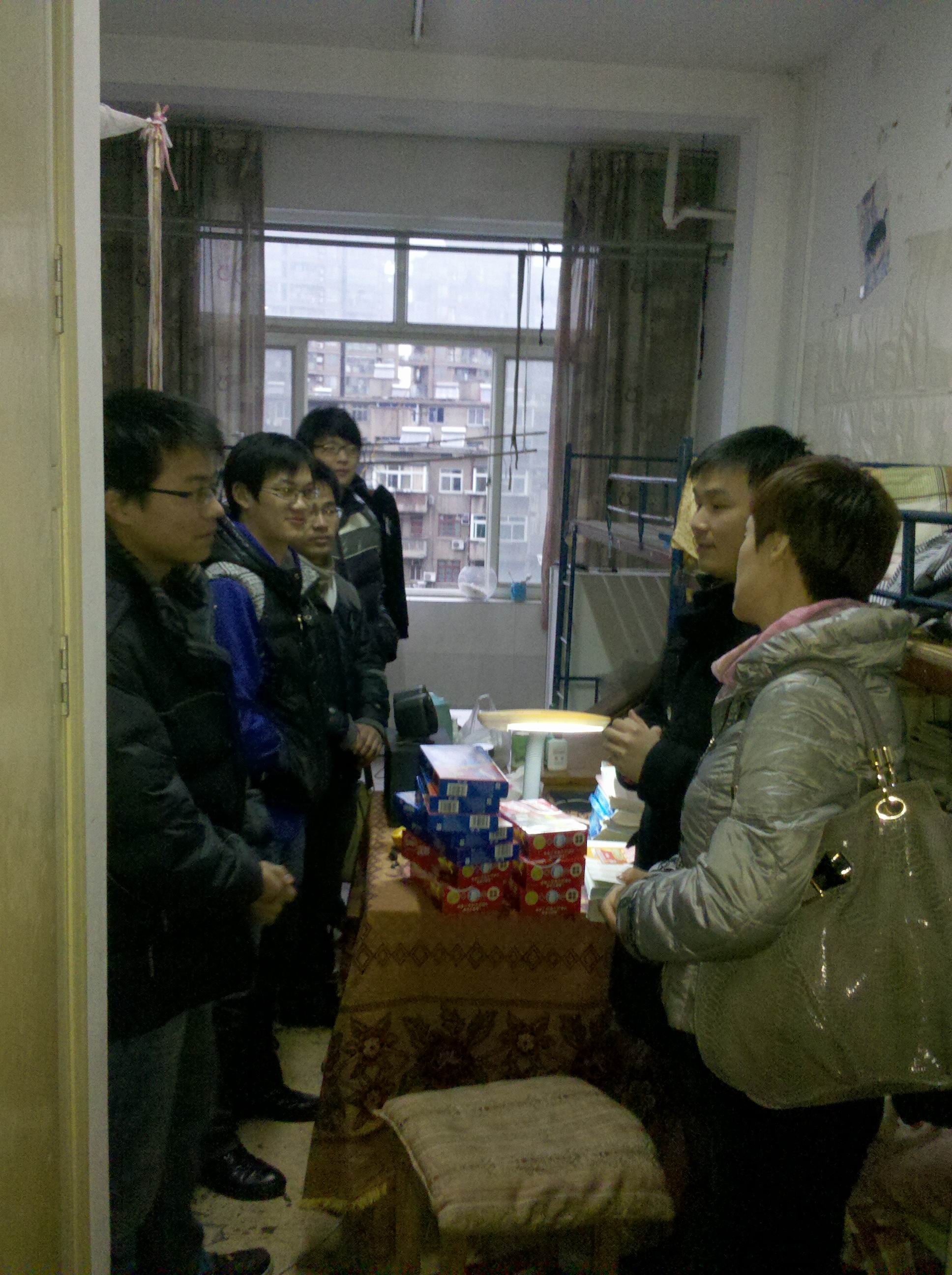永利234112012届毕业生中共有149人报考了2012年的研究生入学考试,占毕业生总人数的36.6%,是历年来报考人数之最,目前考研备战已进入白热化阶段,为了在最后阶段给大家鼓劲,12月27日下午4点半,永利23411张杰书记、谢宏副书记、学工办蒋小红主任、彭溶老师带着精心准备的慰问品来到老卫校宿舍看望考研学生。 张杰书记首先代表学院向考研学生表示亲切的慰问,叮嘱他们要保证营养、注意身体、积极备考,并预祝他们在2012年研究生入学考试中取得好成绩。谢宏副书记也希望同学们在冲刺最后阶段,把身心调整到最佳状态,取得考研的最终胜利。 同学们纷纷表示一定不辜负领导和老师的殷切希望,争取在2012年研究生入学考试中取得优异成绩!