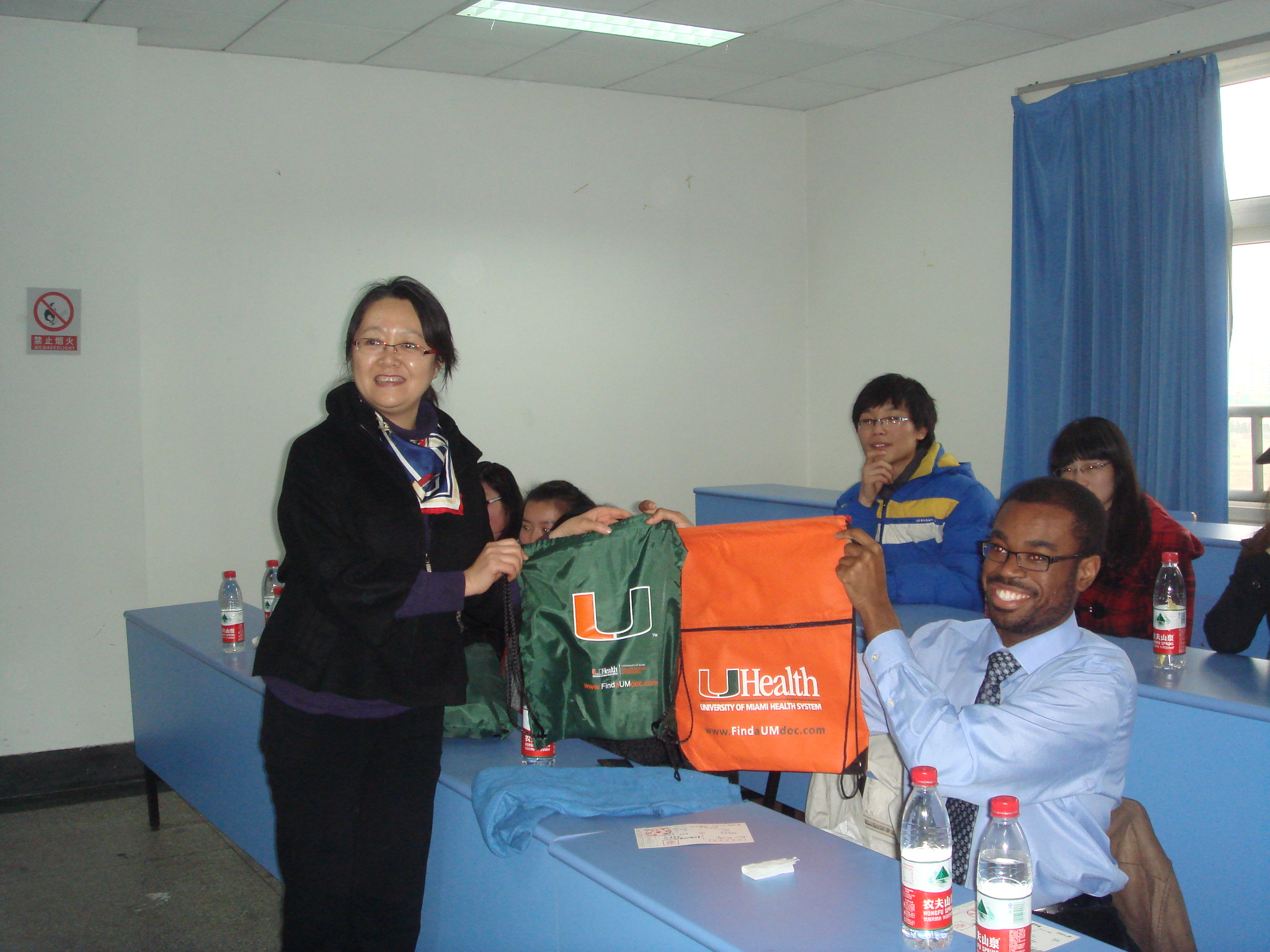 2011年12月27日下午1:30,永利23411在医学实验中心护理示教室举行了中美医学生学习交流会。美国迈阿密大学Miler永利234116位学生近期来嘉兴进行为期3周的交流活动,永利23411为了与国际接轨,以国际化理念开展医学教育改革与研究,安排了以09级临床医学专业学生为主的部分学生与迈阿密大学Miler永利23411的学生进行了医学教育理念和学习方法等方面的交流。交流会由宋国杰教授主持,永利23411分管教学的黄嬛副院长、王敏副院长出席了交流会,附属第一医院何小伟博士也参加了交流会。