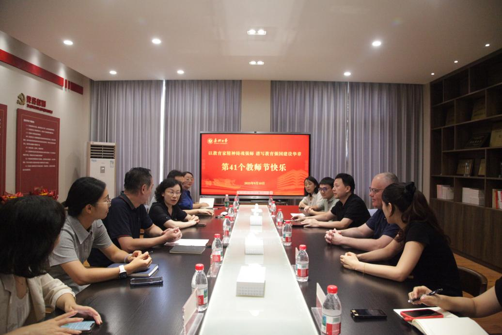 张琦副校长向教师代表阿列克谢院士(外籍院士)、刘石惠老师(校级优秀教师)、徐煌老师(陈省身优秀育人奖)致以节日的祝福和诚挚的问候,详细了解他们教学科研、学习和生活等情况,听取他们对学校发展和教学科研方面的意见和建议,并对其取得的成绩和贡献表示肯定和感谢,希望在今后的工作中能够不忘教育初心,继续做好教学科研工作,再接再厉,为推动学院、学校高质量发展做积极贡献。