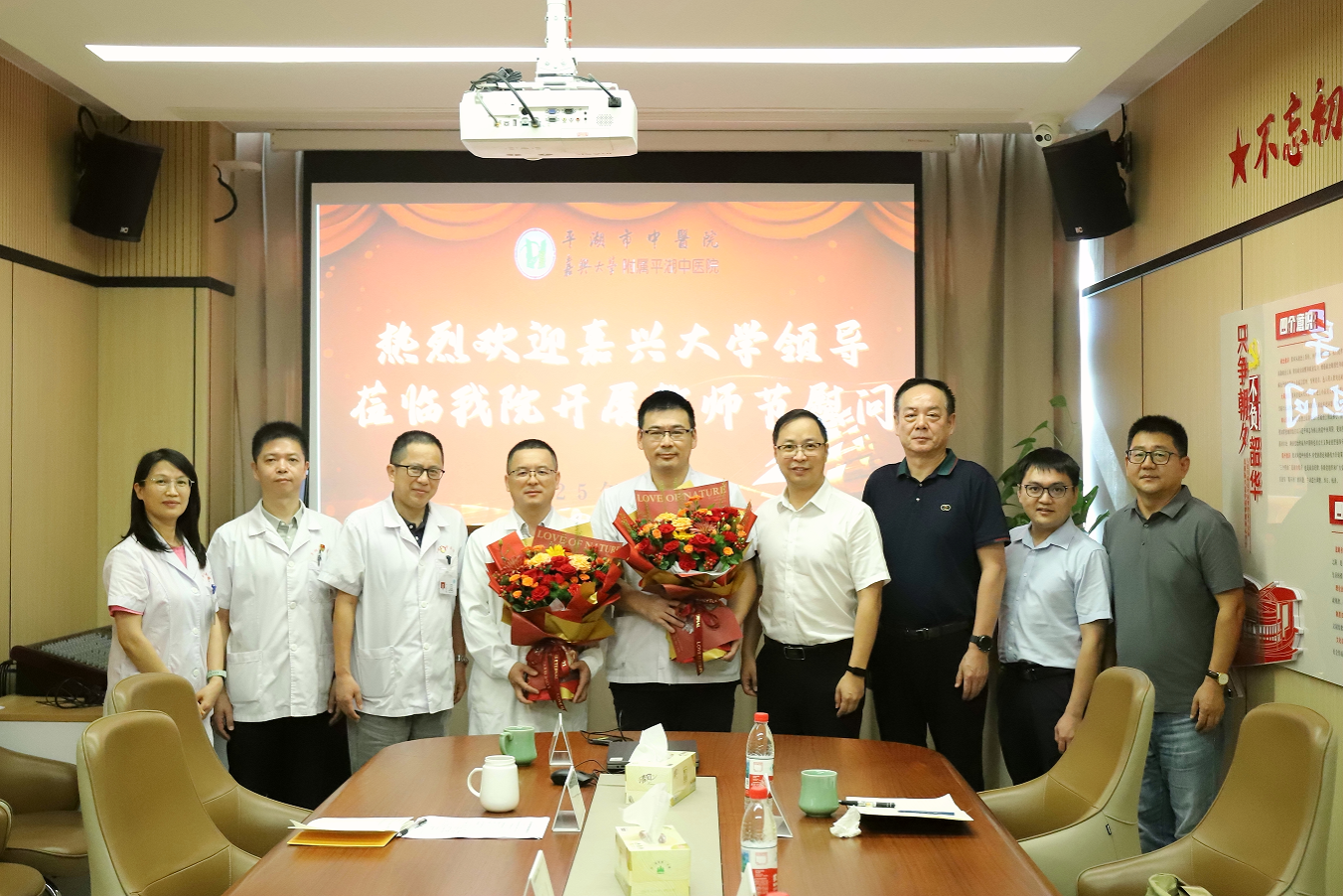 沈希等校领导感谢各附属医院一直以来对学校医学教育工作的支持和付出,希望广大临床教师不断提升医疗水平、教育教学能力、科学研究能力,在医学人才培养与医学科技创新方面为“健康浙江”“健康嘉兴”建设贡献更多“嘉大”力量,努力服务好地方卫生健康事业高质量发展需要。为建设“有特色、善创新的综合性高水平大学”作出更大的贡献。