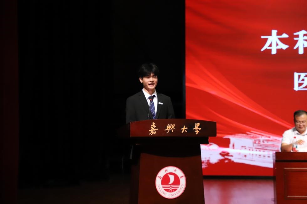 高年级学生代表医本221班刘铭锌同学从明确规划、专注学习、勇于实践、心性修养四个方面分享了自己的成长体会,鼓励新生以梦想为帆、以实干为桨,在医学的海洋中乘风破浪,书写青春华章。