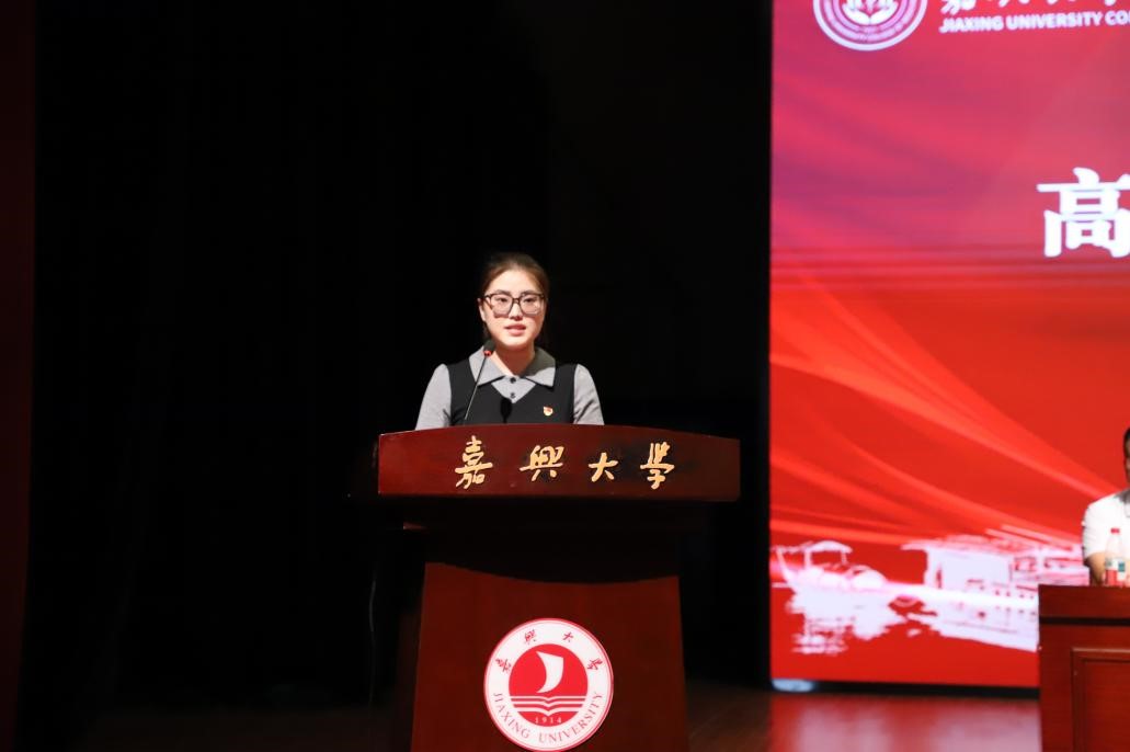 硕士研究生新生代表顾欣雨回顾了在嘉大的成长历程,衷心感谢母校四年来的培养,并围绕做专业的“深耕者”、温暖的“守护者”和彼此的“同行者”三个方面畅谈感悟。她呼吁大家共同成为嘉大永利23411学术沃土的“见证者”与“开创者”,开启一段无愧于己、无愧于时代的学术新程。