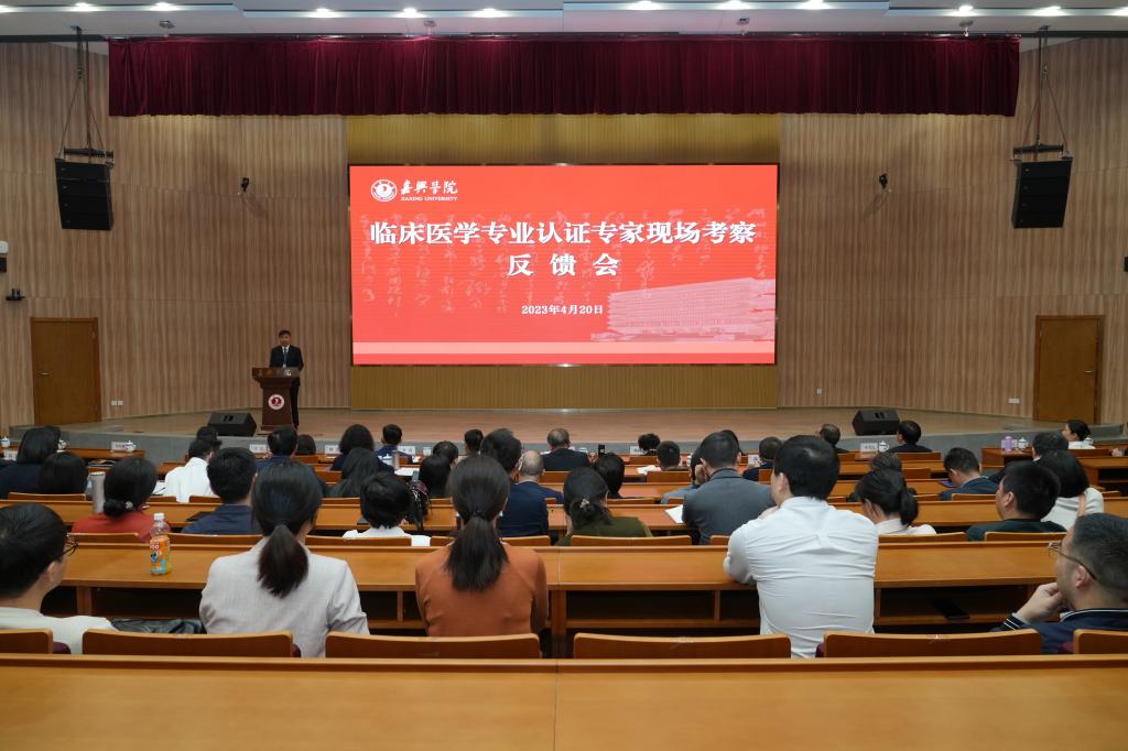4月20日上午,临床医学专业认证专家现场考察反馈会召开。以哈尔滨医科大学原副校长曹德品教授为组长,汕头大学永利23411原执行副院长杨棉华教授为副组长的专家组全体成员,嘉兴市政府副秘书长金球,校领导卢新波、吴云达、钱方明、胡俊云、陈新友、张琦、陈荣达、周宏伟等出席会议。会议由杨棉华教授主持。